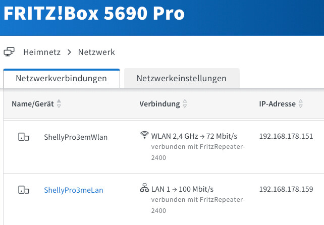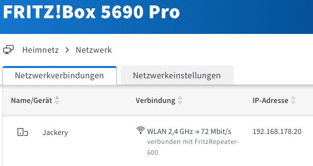 Da fällt mir aber direkt noch etwas anderes auf, denn die Geräte sind mit unterschiedlichen Repeatern verbunden (Jackery über FritzRepeater 600 und Shelly über FritzRepeater 2400) und nicht direkt mit einem Router.
