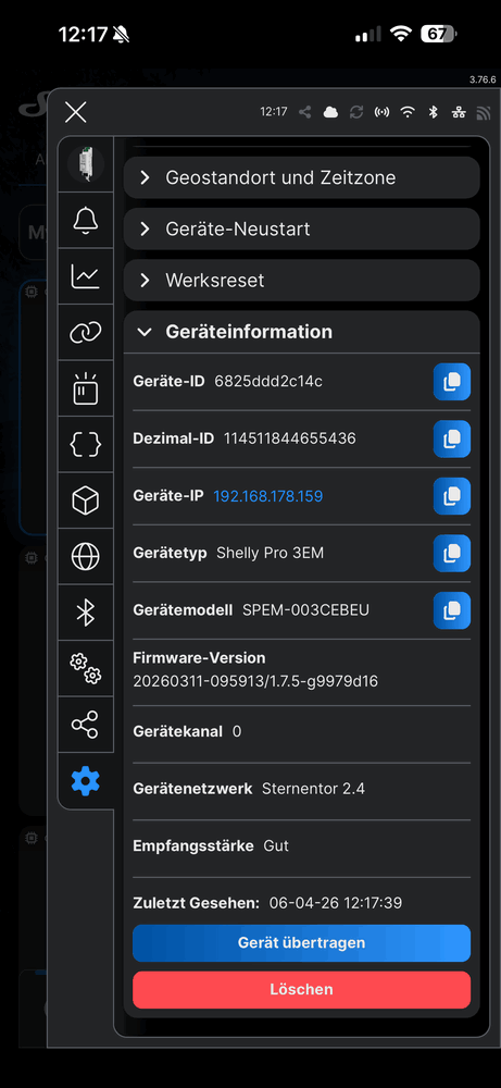 Der Shelly Reset war übrigens für die Einbindung über das Heimnetz gar nicht nötig, obwohl die es schreiben.